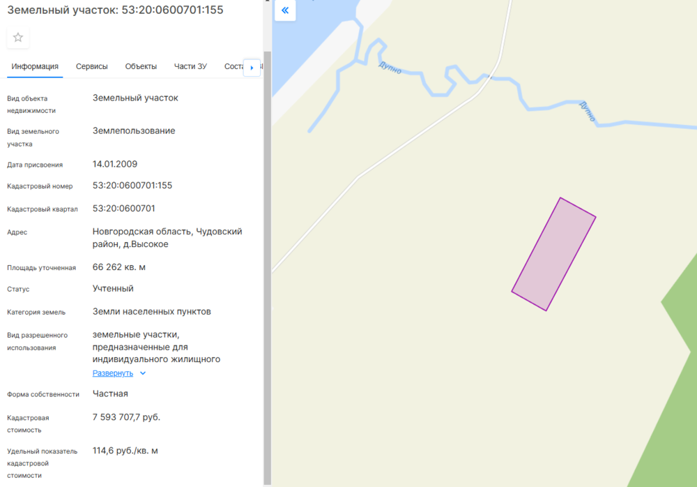 Земельный участок, общей площадью 66 262 ± 2252 кв.м. Местоположение: Новгородская область, Чудовский район, д. Высокое Кадастровый номер земельного участка 53:20:0600701:155, Категория земель: Земли населенных пунктов, Разрешенный вид использования: для индивидуального жилищного строительства Ознакомление с имуществом производится по его местонахождению собственными силами участников без предварительного согласования с финансовым управляющим. Ознакомление с документацией производится на сайте ЭТП путем скачивания электронных документов или по предварительному согласованию с финансовым управляющим по адресу электронной почты. Ознакомиться с имуществом можно с момента публикации сообщения о продаже имущества и до окончания приема заявок.