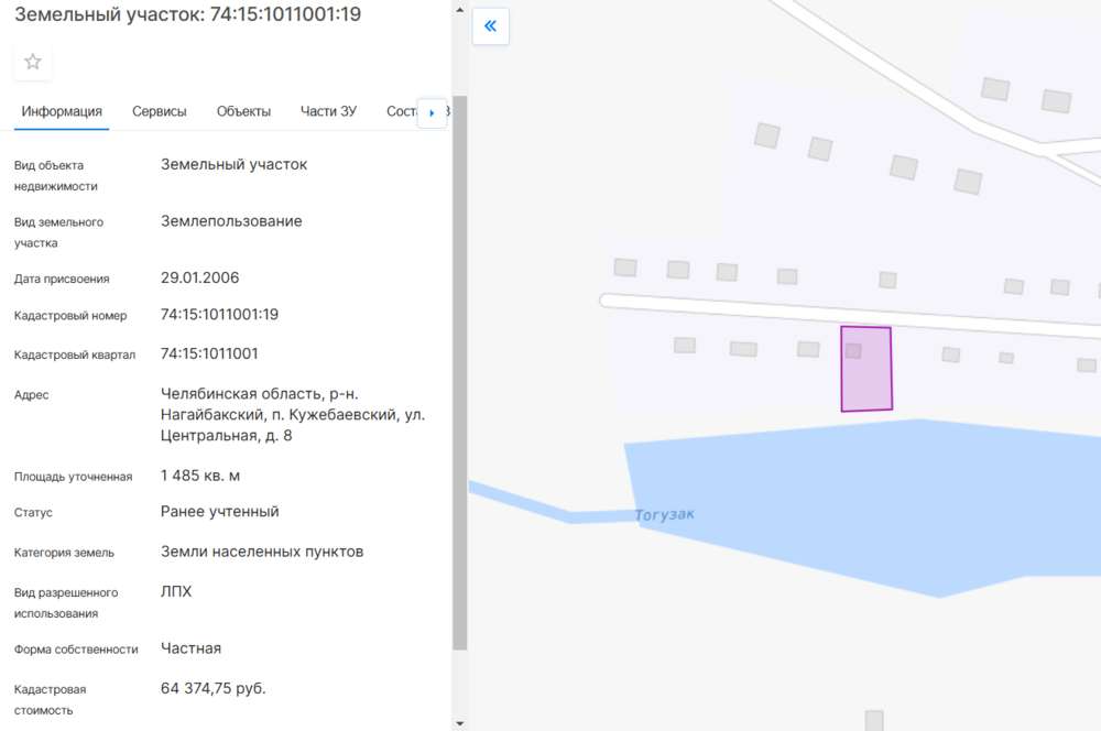 1/3 доли на Здание жилое, собственность, площадь 61.6 кв.м., местоположение: Челябинская область, р-н. Нагайбакский, п. Кужебаевский, ул. Центральная, д. 8, кадастровый номер: 74:15:1011001:195, вид права, доля в праве: Общая долевая собственность, доля в праве 1/3 1/3 доли на Земельный участок, собственность, площадь 1485 +/- 26.97 м2, местоположение Челябинская область, р-н. Нагайбакский, п. Кужебаевский, ул. Центральная, д. 8., кадастровый номер: 74:15:1011001:19, вид права, доля в праве: Общая долевая собственность, доля в праве 1/3 Порядок ознакомления с имуществом должника: Ознакомление с имуществом производится по месту нахождения имущества с момента публикации сообщения о продаже имущества и до окончания приема заявок по предварительной записи по телефону