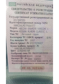 НИССАН АЛЬМЕРА КЛАССИК 1.6 SE, Год изготовления: 2007