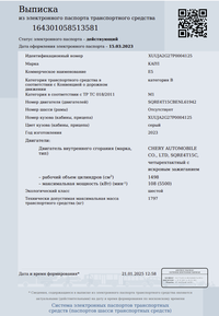 Автомобиль: марка КАIYI, модель Е5, год выпуска 2023, VIN XUUJA2G27P0004125. Техническое состояние: повреждений и дефектов на кузове нет. ЛКП без повреждений. Двигатель и подвеска в нормальном состоянии. Технически исправна. Состояние салона отличное. Обращаю внимание, что автомобиль находился в эксплуатации и является бывшим в употреблении; может иметь скрытые недостатки (неисправности), которые являются следствием эксплуатационных дефектов или естественного износа любых узлов, агрегатов и комплектующих, а также следствием ненадлежащего использования, ремонта или технического обслуживания. Данное транспортное средство находится в залоге у АО «Альфа-Банк». В соответствии с подпунктом 4 пункта 1 статьи 352 ГК РФ залог прекращается, а сведения о залоге исключаются из реестра уведомлений о залоге движимого имущества, после реализации заложенного имущества и удовлетворения требований залогодержателя.