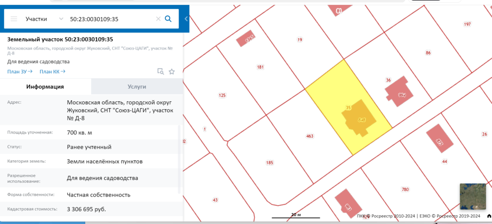 - Жилой дом, общей площадью 341,70 кв.м., по адресу: Московская область, г.о. Жуковский, СНТ «Союз-ЦАГИ», уч. Д-8, кадастровый № 50:23:0030109:848; - Земельный участок, общей площадью 700 кв.м., по адресу: Московская область, г.о. Жуковский, СНТ «Союз-ЦАГИ», уч. Д-8, кадастровый № 50:23:0030109:35 .