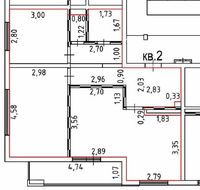 Квартира площадью 57 кв.м., состоящая из 2 комнат, этаж 1