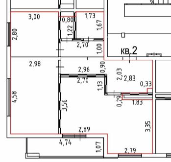 Квартира площадью 57 кв.м., состоящая из 2 комнат, 3 этаж